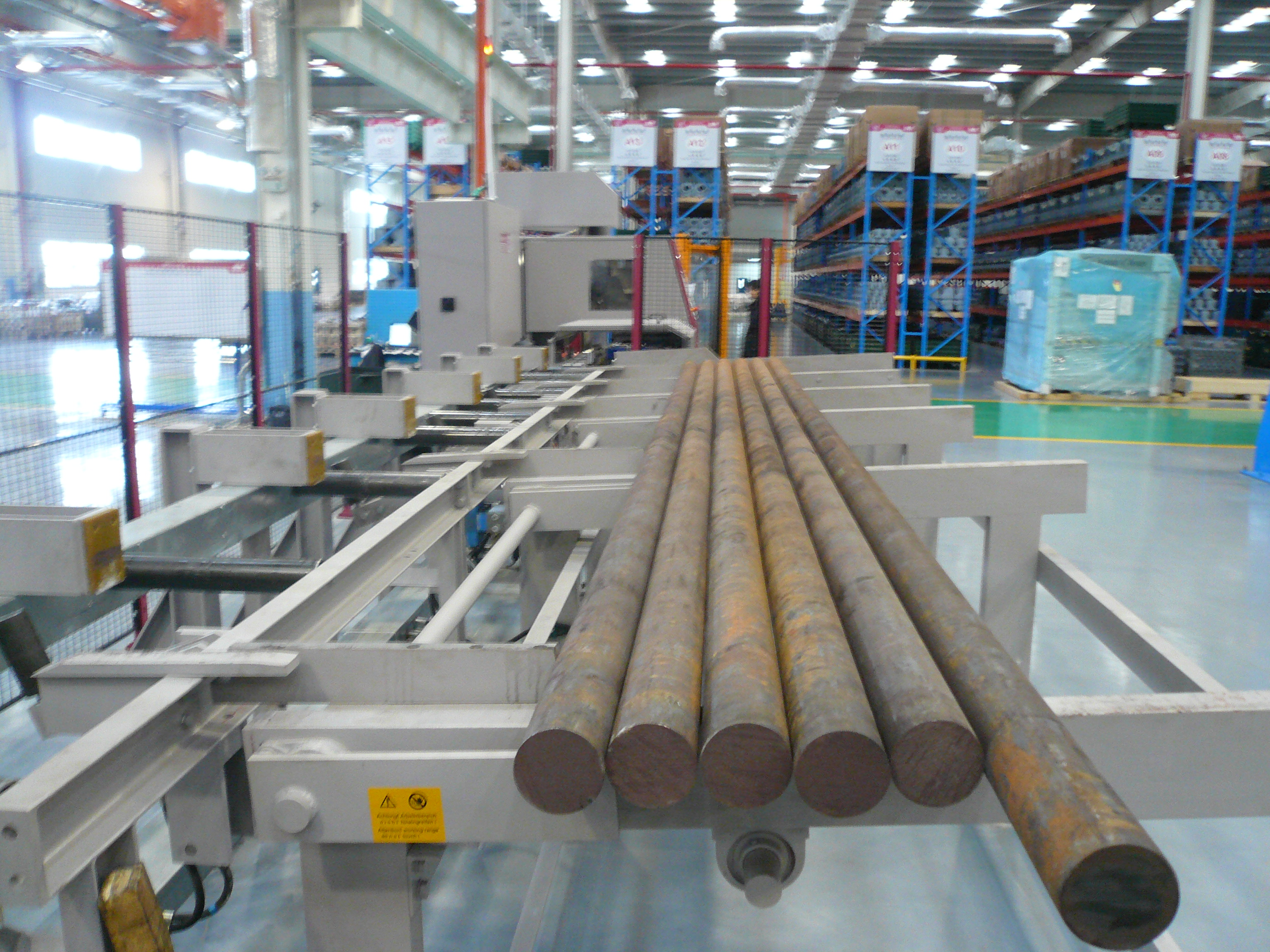 上料架安装在主机进料端,可不间断地将原料放至进料辊道进而送至主机,实现连续生产。根据原料棒的形状特点,有不同类型的上料架可供选择。
