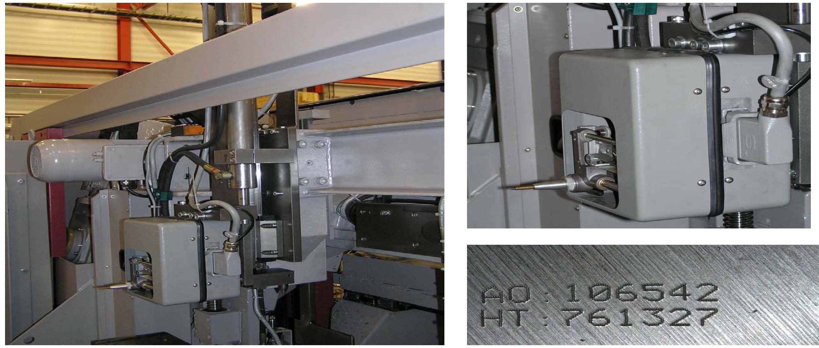 生产线自动打标系统主要应用于冶金、机械等各行业流水线生产中对工件进行自动化打标。可根据工件大小、形状、材质、使用工况以及拟打标位置和内容等不同需求,采用激光打标机、喷墨打标机、气动针式打标机或滚筒打标机等,打出字符、条形码或二维码等标识。打标内容可在系统操作屏上输入,也可在打标仪表上输入,操作方便、作业高效。