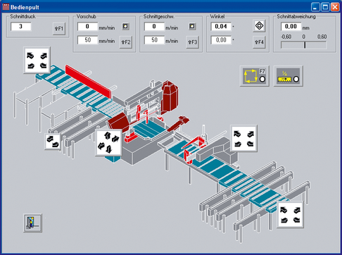 自动切割钢铁和金属材料时,推荐使用贝灵格PC控制系统,机器的所有主要功能都可通过用户界面触摸屏控制。高度自动化流程中,带锯切监控的自动进锯功能等确保了锯切流程的可靠性。